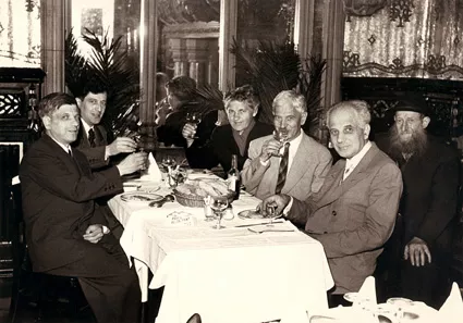 This photo was taken during the visit of the secratary of the Warsaw Bund to Paris. I don’t know who the orthodox Jew behind us is, but I think this was a kosher restaurant, and maybe he was not with us.