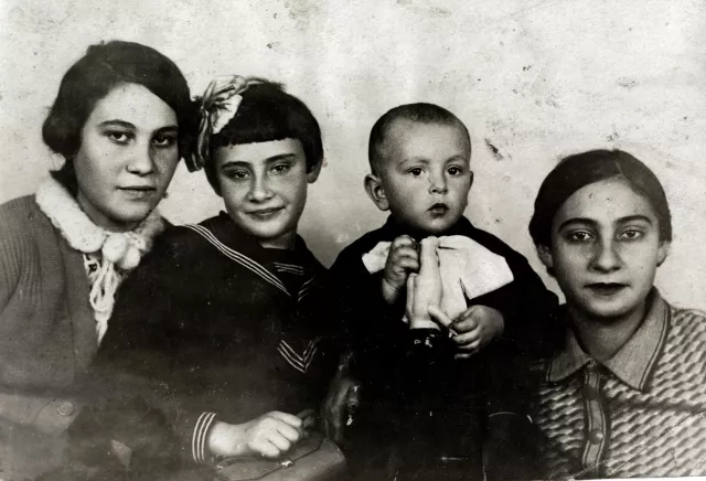 On the left - I, Yelizaveta Dubinskaya, on the right - my sister Maria. The girls had this picture made on purpose with their sister's children Zhenya (Yenya) and Dima, because they were very proud of becoming "aunts". The photo was made in Kiev before the war (approximately in 1940).