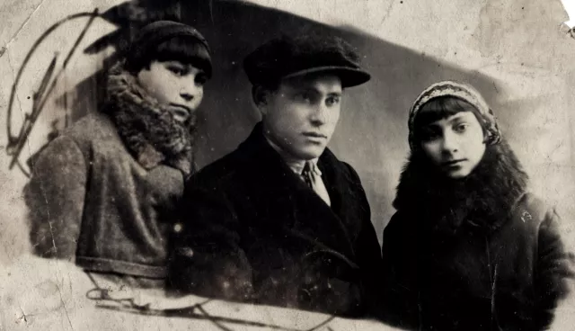 From left to right: I - Yelizaveta, my brother Leonid and sister Maria Dubinskies. The photo was made in 1934 in Kiev and sent "to sister Roza, brother-in-law Johan, and our dear niece Yenichka".
