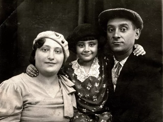 My sister Rozalia, her husband Jonah Saltsov, and their daughter Zhenya. The photo was made in Kiev before the war.
