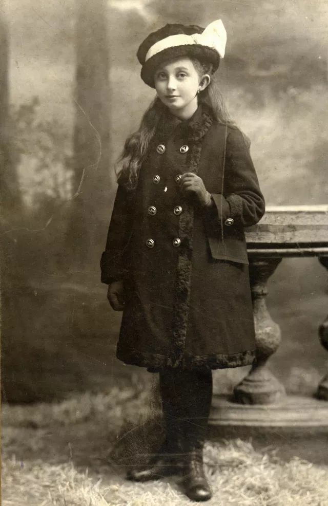 In this photo my mother, Ella Wernerova (nee Weissensteinova) is around eight or nine years old, her parents had her portrait taken in Nachod at the Langhans studio.