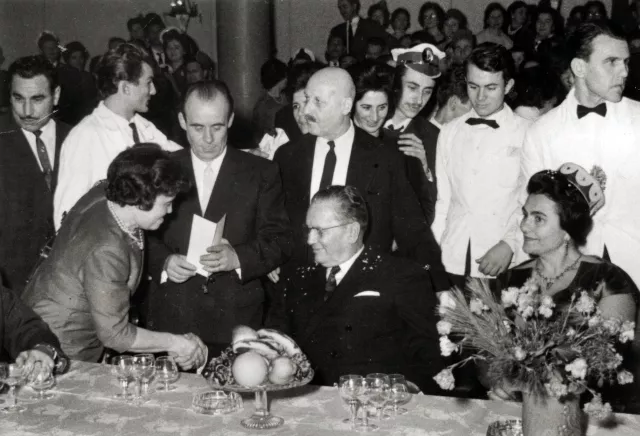 Josip Broz Tito is sitting in the middle, next to him is his wife Jovanka. I am shaking hands with Tito, that was a very important occasion for me. I was excited and thrilled to be in his proximity.