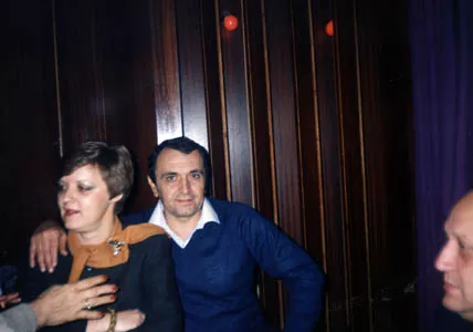 This is a photo of my daughter Ema and her husband Isak Mezan, taken at her 34th birthday party. On the right is my husband Tosho in profile. The picture was taken in Plovdiv in 1987. The picture was taken in Plovdiv. There is no writing on the back of the photo.
