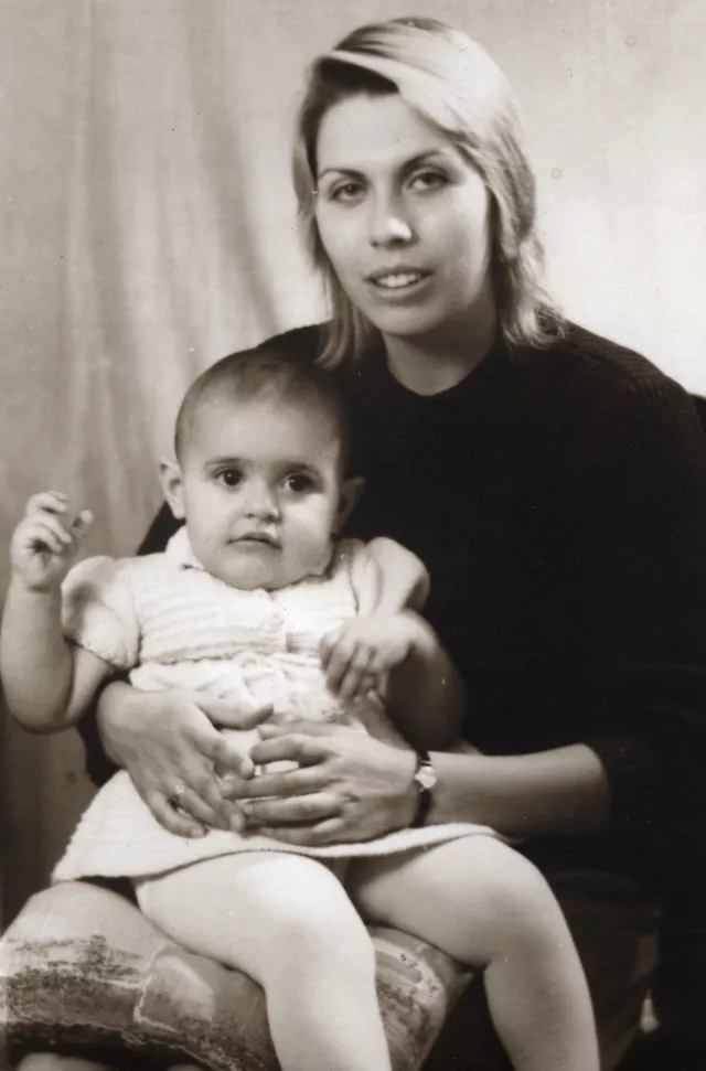 This is a picture of my daughter Ema Levi with her second-born daughter, Mariola. The picture was taken in Sofia in the 1970s. My daughter got married early, gave birth to two children, yet her marriage failed. She did not work at that time; she only took care of her children. My first granddaughter's name is Teodora.