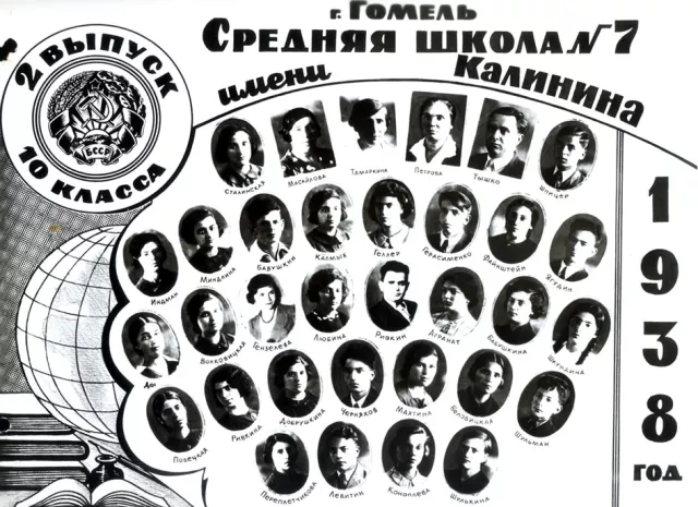 This photograph was taken in Gomel in 1938. It shows my classmates when we were pupils of the last form.