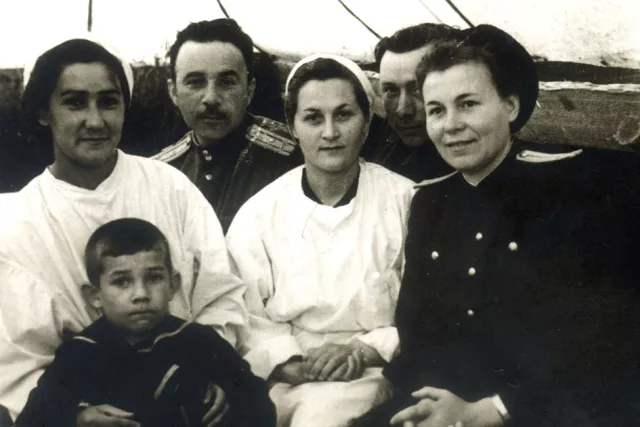 And my husband's family remained in the besieged Leningrad. He managed to help them bringing food, because he served nearby. His sister Maria served in the same medical unit.