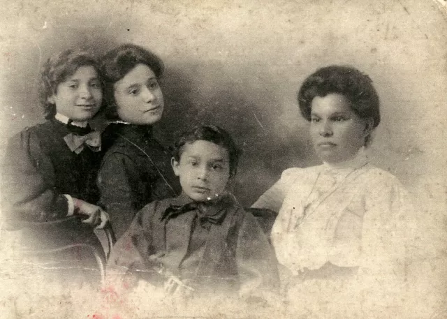 My grandmother Enta Begam, nee Antokolskaya, and her children. From left to right: my aunt Maria, my mother Judith, my uncle Lev and my grandmother Enta. The photo was taken in Moscow in 1918 when Maria finished grammar school.