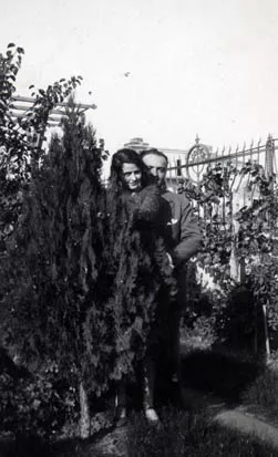 Here you can see my mother Ernesta and my father Victor Molho in my maternal grandmother’s garden. The photo was probably taken in the 1920s. There is no inscription or seal of a photographic studio.