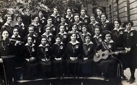 This is the French College in Ruse where my mother studied. My mother, Ernesta Molho, is the second from the right on the second row. The year is most probably 1929 or 1930. There is no inscription or seal of a photographic studio. The back is designed like a postcard.