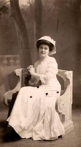 This picture of my mother, Erzsebet Gunst (nee Kohn), was taken in Hodmezovasarhely in 1909, I think, right before my parents' wedding. My mother is dressed in the style of the period, I think she's very beautiful and elegant in this picture.