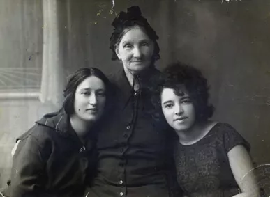 In the center is my grandmother Ester Gurvich wearing a cap, to the left is my sister Anna Gurvich, to the left is my cousin Anna Burstein. The picture was made in Kaunas in the 1930s.