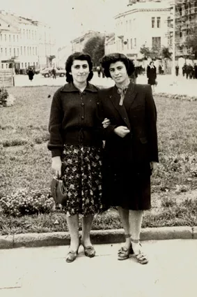This is my cousin Etka Adashkaite (to the left) with her friend, whose name I do not know. The picture was made in Vilnius in 1955.