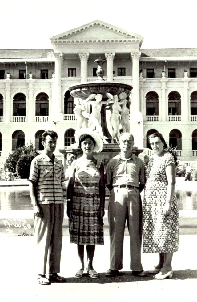 Our family; from right to left: my mother Friena Chazova, my father Pyotr Chazov, my sister Ludmila Chazova and I. This photo was taken during our family vacation in Sochi, at the Black Sea in 1956.