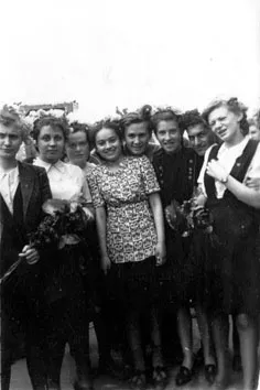 I, Evgenia Wainshtock with my class. Photo made in Kiev in 1949 when I finished school.