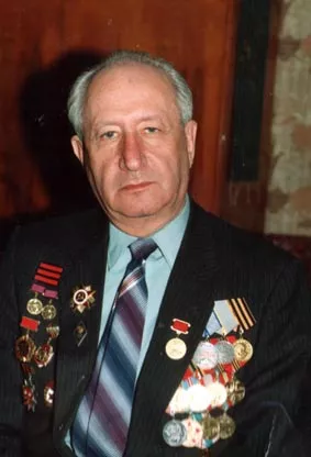 The picture was taken for the album Jewish Veterans of War , made by the Council of the Jewish Veterans of War on the occasion of the 60-year anniversary of victory. There are awards on my jacket to the left, from top to bottom: 3 stripes for wounds, father's Red Star Order, medal 'For Bravery', father's medal ' For Military Merits', Guards insignia, Insignia of Guards Red Banner Rifle Division # 56. To the left are different jubilee medals devoted to the memorable dates of Victory day and Soviet Army Day. The picture was taken in Moscow in 2005.