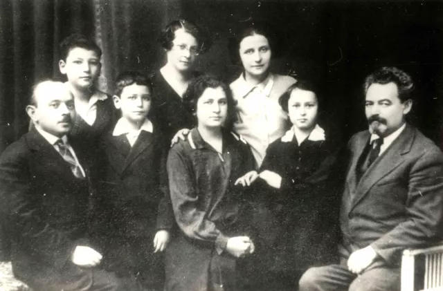 This is a pre-war picture of my husband's family: to the right sitting is his father Jacob Yatsovskiy, the third to the right sitting is his mother Maria Yatsovskaya, my husband's brother Alexander is standing next to her (the 4th to the right), my husband Evsey is standing second to the left. I don’t know the rest. The picture was taken in Kaunas in 1930.
