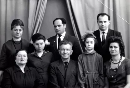 she sits on the left. Sitting in the center is her husband Michael Gaitner. Standing behind her is their daughter Tatiana Lanzman (nee Gaitner), standing in the center is Tatiana's husband Michael Lanzman, between them is their daughter Evgenia Lanzman. Sitting on the right is aunt Chava's daughter Mania, standing behind her is her husband Kim, her daughter Lilia is on her left.