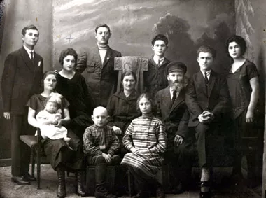 My grandfather Mendel Weisman, and his wife Basia Weisman, their children and members of their family: