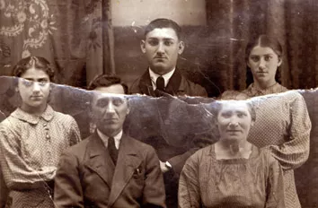 This is me and my family. Sitting: my father Efim Melamed, my mother Leya Melamed. Standing: from left to right: I, Faina Melamed, my brother Boris Melamed, my sister Esfir Melamed. This photo was taken in Samarkand in 1940.