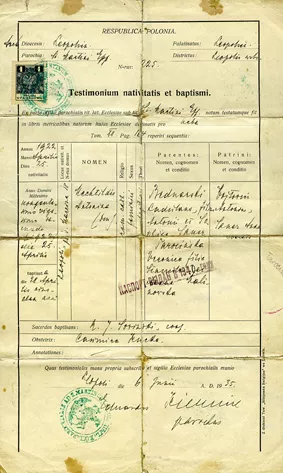 This is my fake birth certificate I received from Staszek. The name on it is Matylda Bednarska.