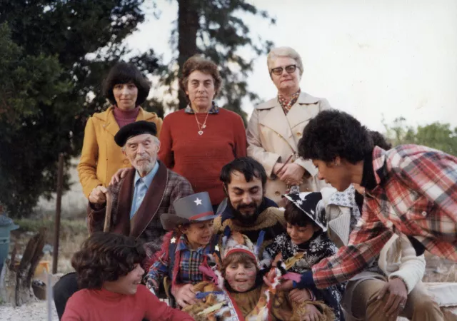 This is a family photo of my sister Milka Revah. The woman at the back with the weater is my sister Milka Revah and the man in center of the picture is her son, Izi [Izak] Revah. The old man - first from left in the photo, is my father Beniamin Kohen. I do not remember who the other people on the photo are. The picture was taken in 1974 in Tel Aviv.