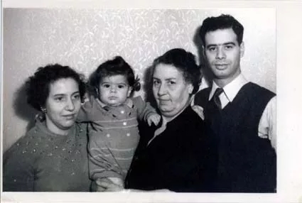 The people in the photograph: My wife, my older son Saul at one year of age, my mother and myself.
