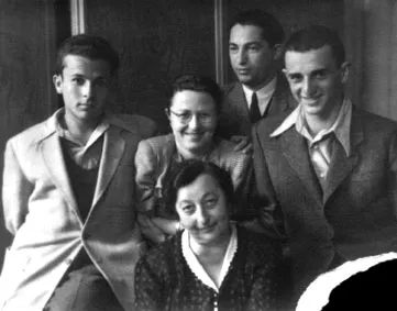This is my family after my father, Mendel Farkas, died. The photo was taken in Turda in 1945. The one in the front, in the center, is my mother Fanus Farkas, behind her, on the left, that's me, Jozsef Farkas, the one in the center is my elder sister Eva Marton, on the right that's my younger brother Imre Farkas, while the one in the back is my sister's husband, Erno Marton.