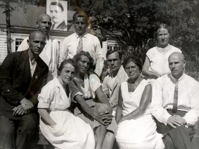 Look at the tense unsmiling faces of her sanatorium acquaintances. The watchful eye of a portrait is hanging over them. Looks like it is A. A. Zhdanov. This picture is indeed a document of the epoch.