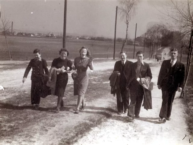 This is my wife Fela Baum, her sister Andzia and our friends on a trip just outside Kielce, near the monastery in Karczowka. It could have been 1937 or 1938.