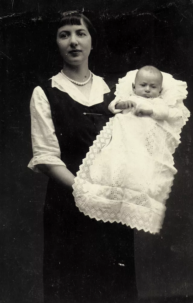 Ferenc Sandor's great-aunt Julia Popper with her newborn baby