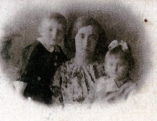 This is a picture of Fira Sirotta, my younger brother Yasha Sirotta's wife, and their children, Larissa and Mirrah Sirotta. The photo was taken in Cheliabinsk in 1944 when they were in evacuation. Fira sent this photo to me and Yasha to show us how much the children had grown.