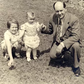 This photo is from 1938, and was taken in Dobris, where we had a summer apartment rented. On the right is my uncle Frantisek Lauscher, and I’m the little child in the middle.