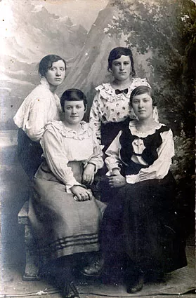 This is a picture of my mother Freida Usatinskaya (nee Pivchik), standing on the right wearing a light blouse, and her friends whose names I don't know. They were photographed in Gaisin in 1914.