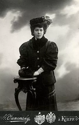 My father's sister Manya Khatset photographed to send her photo to her fiance in Moscow. Photo studio 'N. Ouzemsky a Kieff', Kiev, 1906.