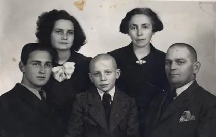 This is my family. From right to left are: my father Yosif Fridman, my mother Blanche Fridman and their three children: my younger brother Faivel, me and my older brother Ruben. The photo was taken in Sofia in the 1940s.