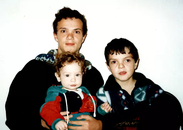 These are my grandchildren - my son Efim's children Oleg, the older, and Anatoliy, the younger.  Oleg is holding my great-granddaughter Nicole, the daughter of Mikhail Zeltser, my daughter Tatiana's son. Photo made in Israel some time in 2000.