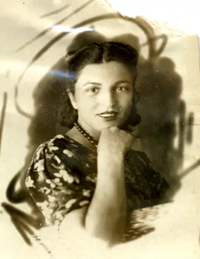 This is me, Frieda Rudometova. This photo was taken in Zelenodolsk in 1943 on the occasion of my wedding. My husband sent this photo to his parents and sisters in Kharkov, so that they could have an idea of the appearance of his wife.