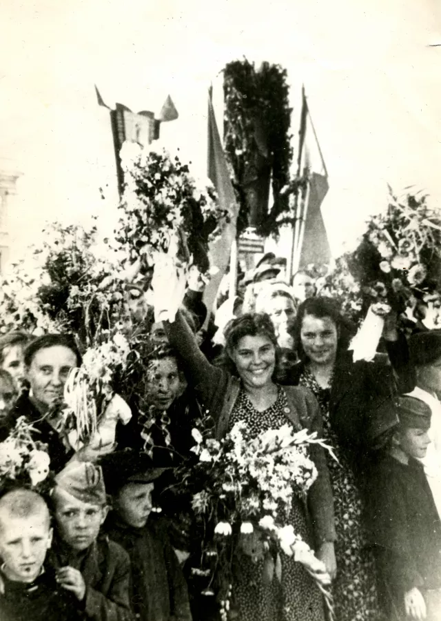 Even after the war, during this hard and hungry period, our country and our town celebrated Soviet holidays like we used to do it before the war. I always went to parades with my school on holidays.