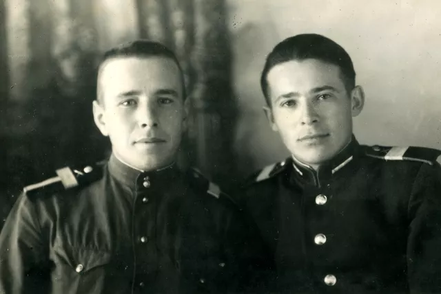This is me (on the left). I was photographed with my army friend, first sergeant of our platoon, Anatoliy Yevdokimov.