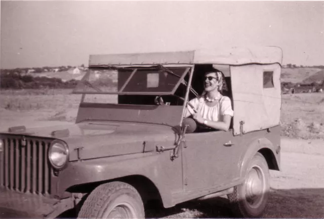 This is a picture of my first car, a jeep. Inside it is an officer-nurse with whom I used to hang around. She wanted a picture of her taken as if she is driving. I was introduced to her by Jacques Saltiel.