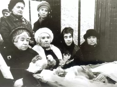 This is a photograph of my relatives who were present at the funeral of Aunt Dorah Khutoretskaya (nee Ugoleva), my father's sister. It happened approximately in 1980. Almost all Ugolevs and Khutoretskys attended the funeral.