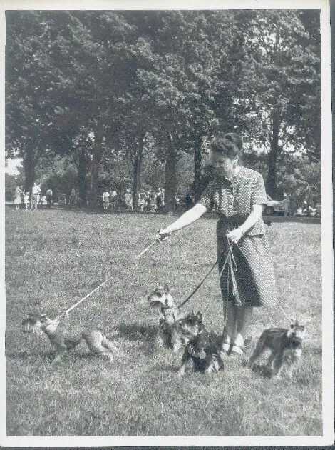 This is a photo of me, Galina Levina, walking my dogs. It was taken in June of 1984 in Leningrad, not far from my house.