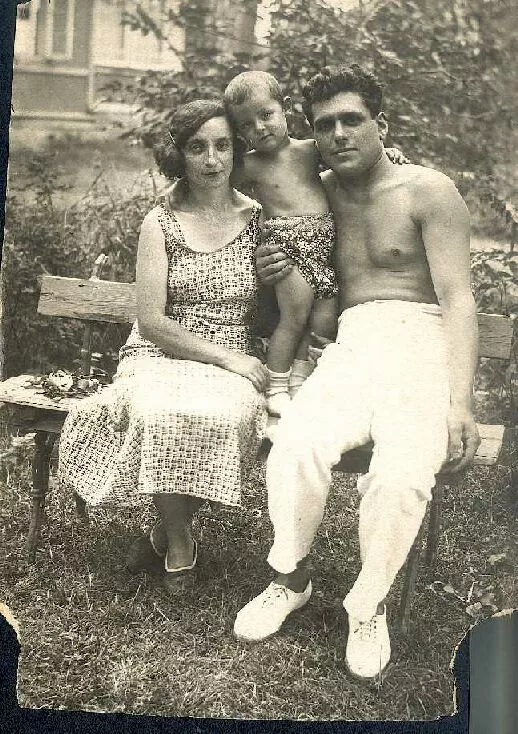 This is a photo of my parents Debora and Moses Markman, holding me, their daughter Galina. Here you can see me when I was very little. This picture was taken in 1937 in Sestrorezk, where our family rented a dacha.
