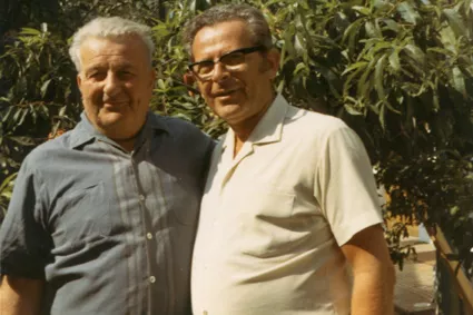 This photograph was taken in the yard of my family home in Piestany in 1972. Standing on the left is my father, Alexander Urban, and beside him is my cousin Tibor Urban, the son of my father’s brother Rudolf. Rudolf Urban had two sons. One was named Tibor, and the other Imre. Imre left with the Aliyah for the Palestine in 1938. There he joined the army, and worked his way up to colonel. He was in the Israeli army his whole life. When he retired from the army, he moved to Australia. His brother Tibor survived the Holocaust and moved to Israel to be with his brother. He started a tailoring business in the town of Ramat Gan. He employed around 50 people. They've both since died.