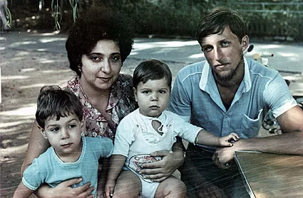 This is my daughter Natalia Skripunova with her husband Sergey Skripunov and their sons: Alexandr (from the left) and Konstantin. (This photo was made in Odessa in 1986. My daughter Natalia was born in 1958. She went to school in 1965. She had expressed Jewish looks and she suffered a lot from anti-Semitic demonstrations of her classmates at school. As a result, she developed a strongly negative attitude toward her Jewish identity. In 1973 Natalia entered the school of Soviet trade. After finishing it she worked in 'the house of toys'. Her management valued her high, but Natalia was attracted to the theater. She went to work as an usher at the Ukrainian Theater and then became an electrician to have an opportunity to travel with the theater. She met Sergey Skripunov, Russian, at the theater. He came to Odessa from Vorkuta. He studied at the Mechanic Faculty of Theatrical School and worked as a scenery assemblyman in the Ukrainian Theater. They got married in 1980. Many employees of the theater came from Western Ukraine and had strong anti-Semitic moods. They said to Sergey: "Why did you marry a zhydovka [abusive word for a Jewess]?' In 1982 my daughter's son Alexandr was born and in 1985 - her second son Konstantin. At that time only I kept her from divorcing her husband. I thought that if life conditions improved their life would get better. My husband and I literally skinned ourselves alive. We sold everything of value we had to save for the first installment for a three-bedroom cooperative apartment. In 1987 they received this apartment and we helped them to buy furniture hoping that they would make it up. As it turned out, it wasn't about an apartment. My daughter's husband couldn't care less about his family drinking and going loose. They divorced. He demanded that my husband and I should pay him a lot of money if we wanted him to leave the apartment. We did and our daughter and grandchildren could have this apartment. My husband insisted that our older grandson Alexandr went to study in the 'Or Sameyach' school, but he was expelled for bad behavior from there. He didn't find it interesting to study in a Jewish school. In 2002 our daughter Natalia died. She had a weak heart that failed her during a gynecological surgery. My husband and I take care of our grandchildren. Their father doesn't care about them. He has another wife. Alexandr is a 4-year student of Ecological University (Hydrometeorological in the past). His specialty is ecology. Konstantin is a last-year student of a machine tool plant. They come to see me, call me and help me.
