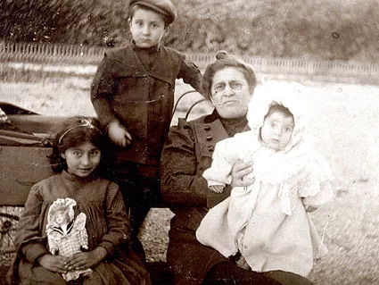This is my maternal grandmother Esphir Zivik with her children Yulia, David and Raisa (on her grandmother's lap). This photo was made in Switzerland in Vevey town in 1907.