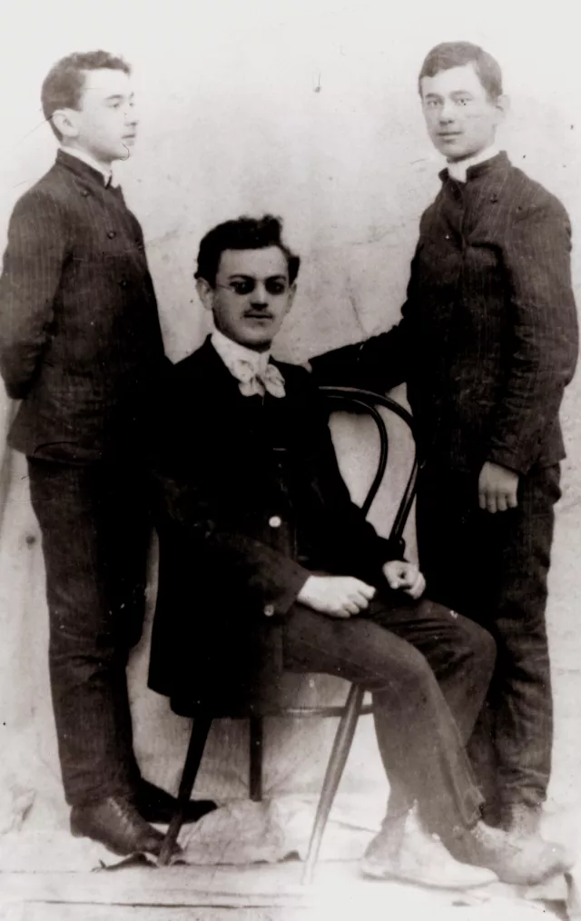 The man sitting in the center of this photo is my husband's father, Meyer Shtilerman. The photo was taken around 1910-1915, during his studies. Meyer Shtilerman was a simple druggist in the village of Emilchino, in the area of Zhytomyr. .