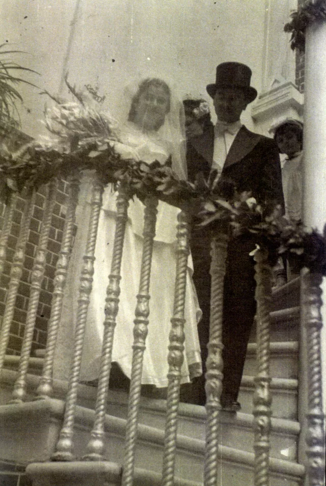We started looking at each other differently after that day. We started going out together and getting to know each other and were promised to each other with a small ceremony among the family. Fani started coming to our house on Sabbath evenings. As I said before my father was quite big and burly. He would just about fit in the armchair he sat in. He loved Fani so much that he would try squeezing in the armchair where he barely fit and say "Come next to me Fanika". My mother and father had Fani sleep next to them because it was hard for us to go back at night. When we were engaged, Kemal was still a bachelor and a ladies' man, when he returned home late from parties, because my father was very conservative, he would immediately stomp on the floor with his cane "Çafteyava el patin" (hit the floor) so that he would go up to his room without delay, because both Fani and my older brother Davit's fiancee Luiza were at home.