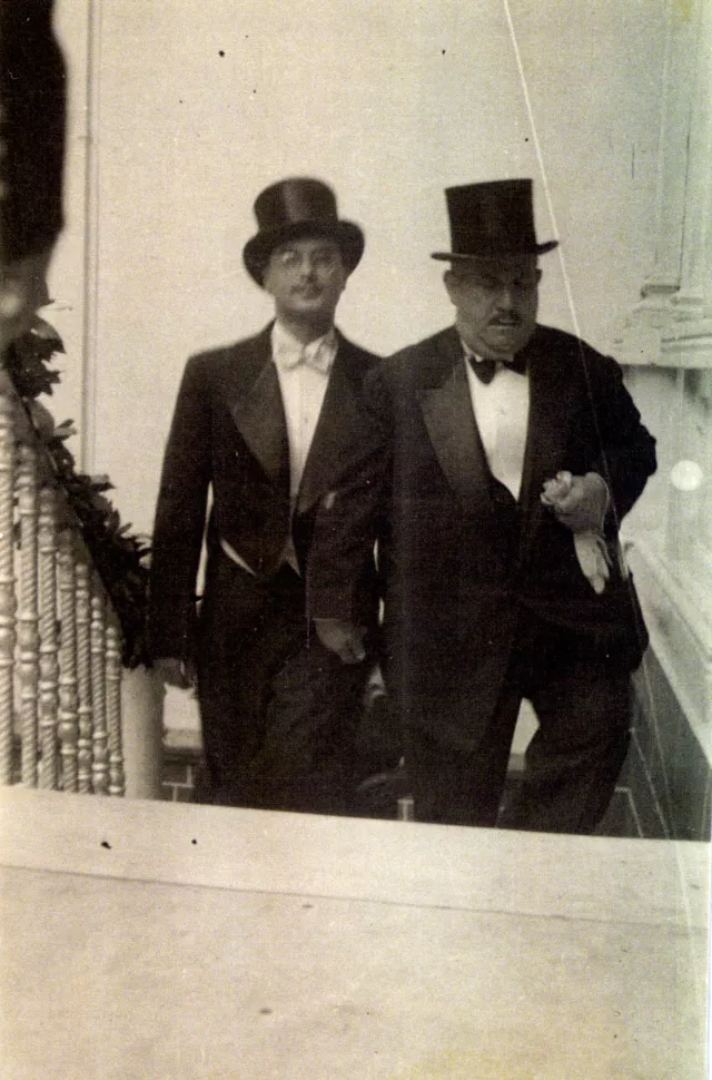 This picture was taken on our wedding day with Fani. In this photograph the person going up the stairs in front of me is my father who is seen bringing me to the synagogue.