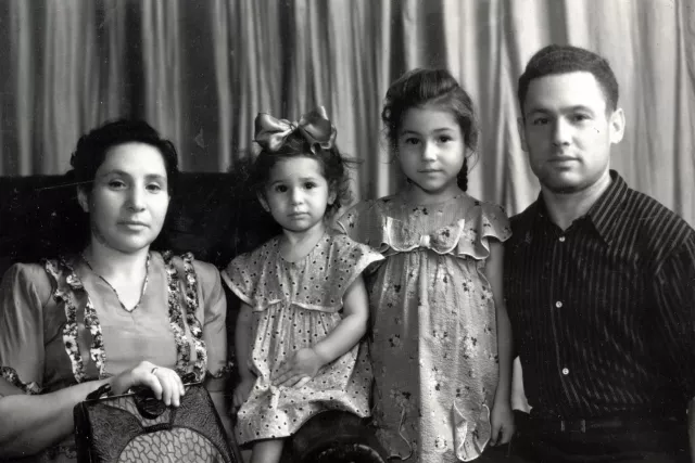 My family: I, Golda Gutner (nee - Gurevich), my daughters and my husband Benyamin Gutner. 1953; Konotop.
